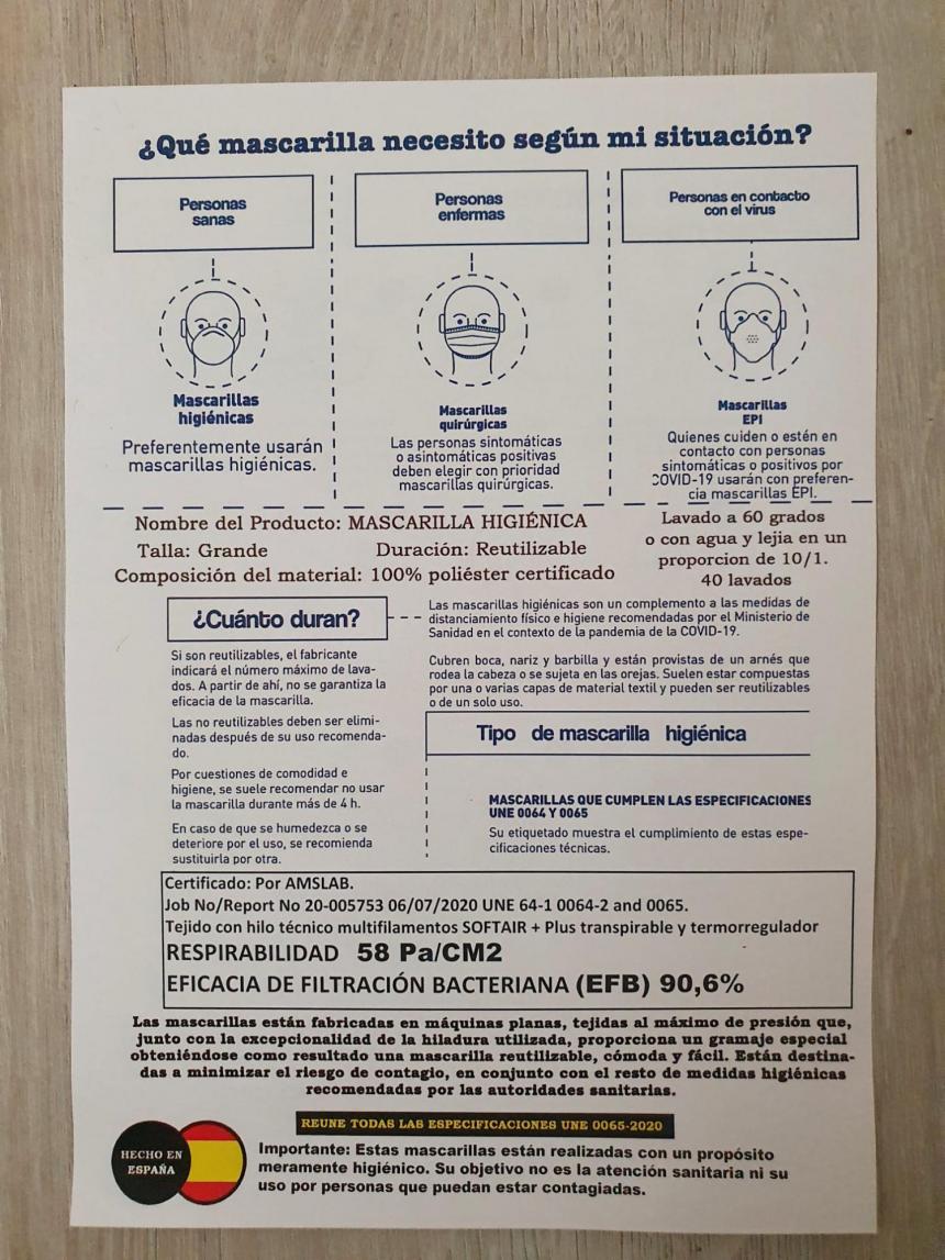 - Es una mascarilla higiénica y no debe usarse como EPI